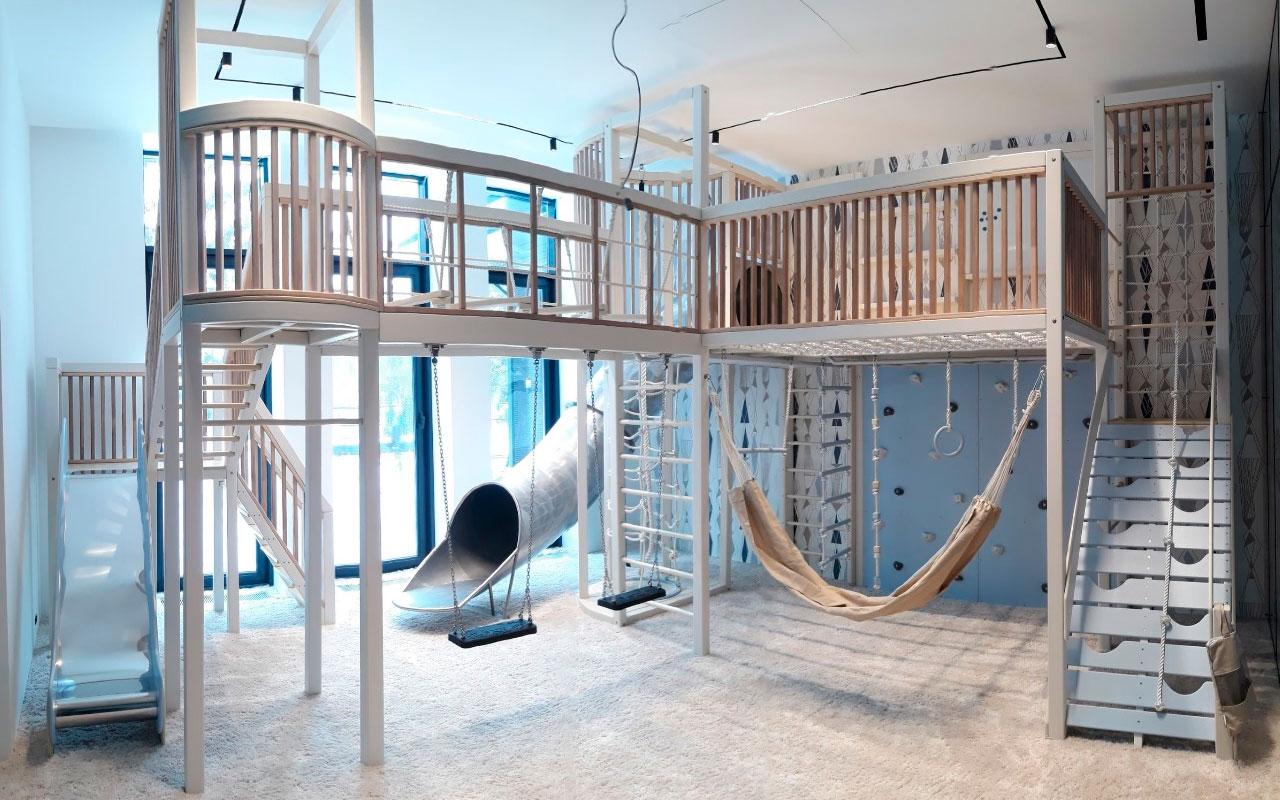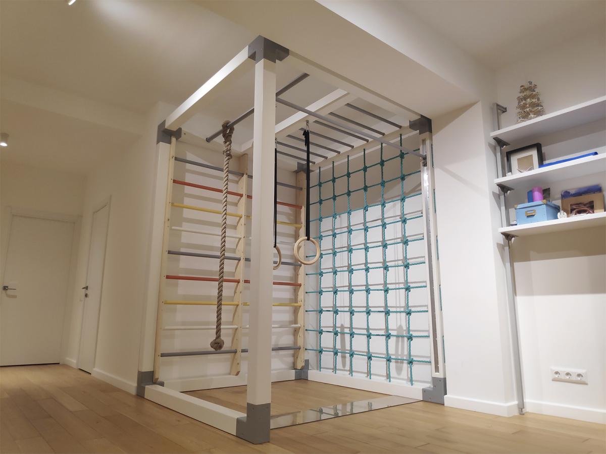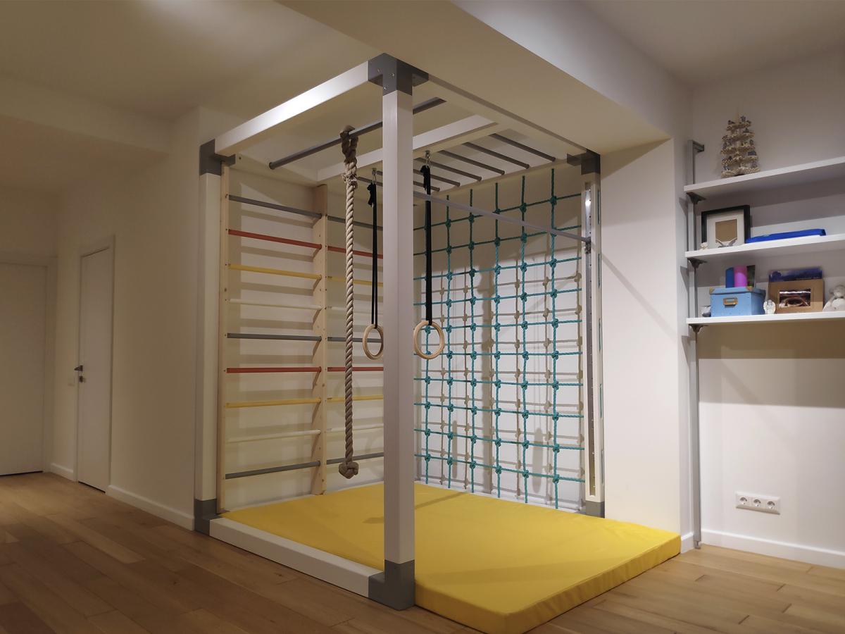 Встраиваемой бывает не только кухонная техника или шкаф в прихожей. Мы встраиваем полноценные деревянные домашние спортивные комплексы в целые комнаты загородных домов и квартир. Вписываем в пространство не только каркас и оборудование, но наполняем помещение духом игры и спорта.