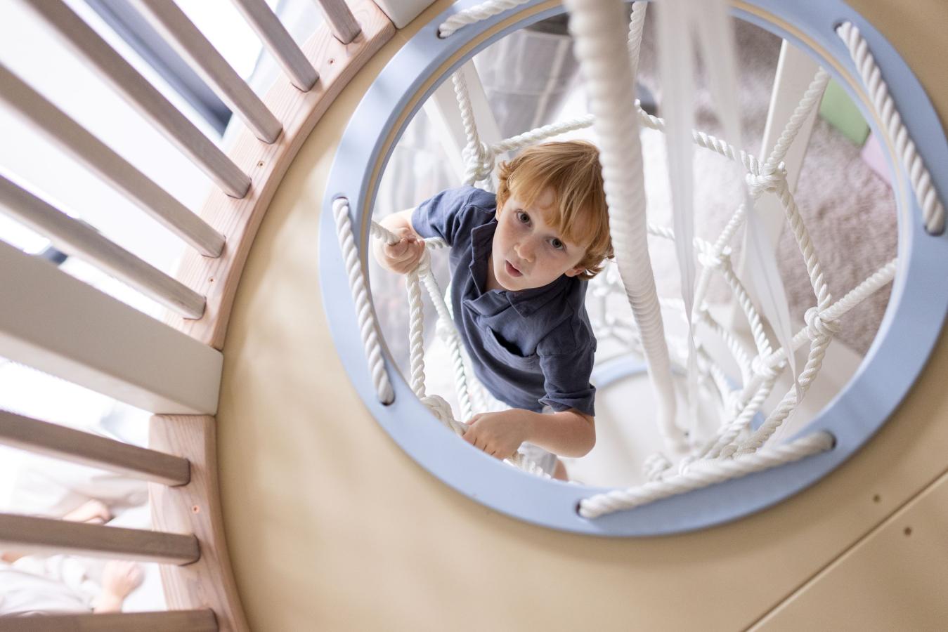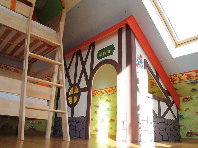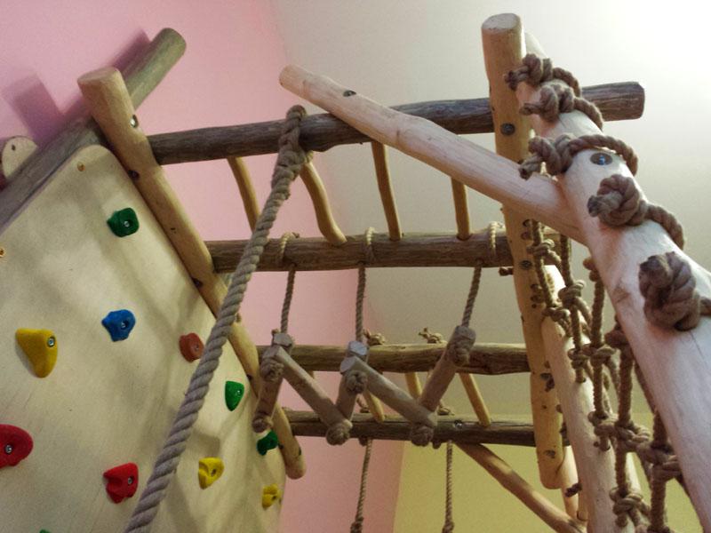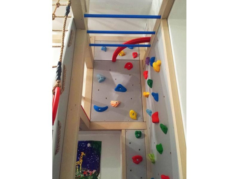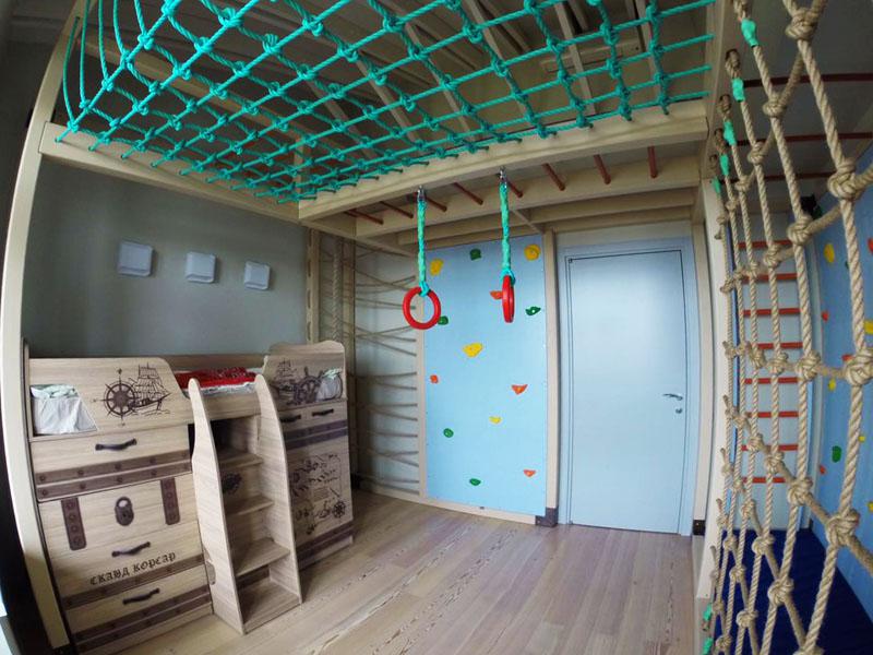 Детские площадки для квартиры могут быть похожи на лаконичный гимнастический зал или вольер для мартышек… Если надо, то потолок будет небом, а паркет газоном. Воображайте дорогие взрослые, оглядывая пока еще пустую комнату, предназначенную для детской. Полистайте журналы, загляните в интернет, посетите зоопарк… Потом звоните нам. Уж мы то развернемся на славу.